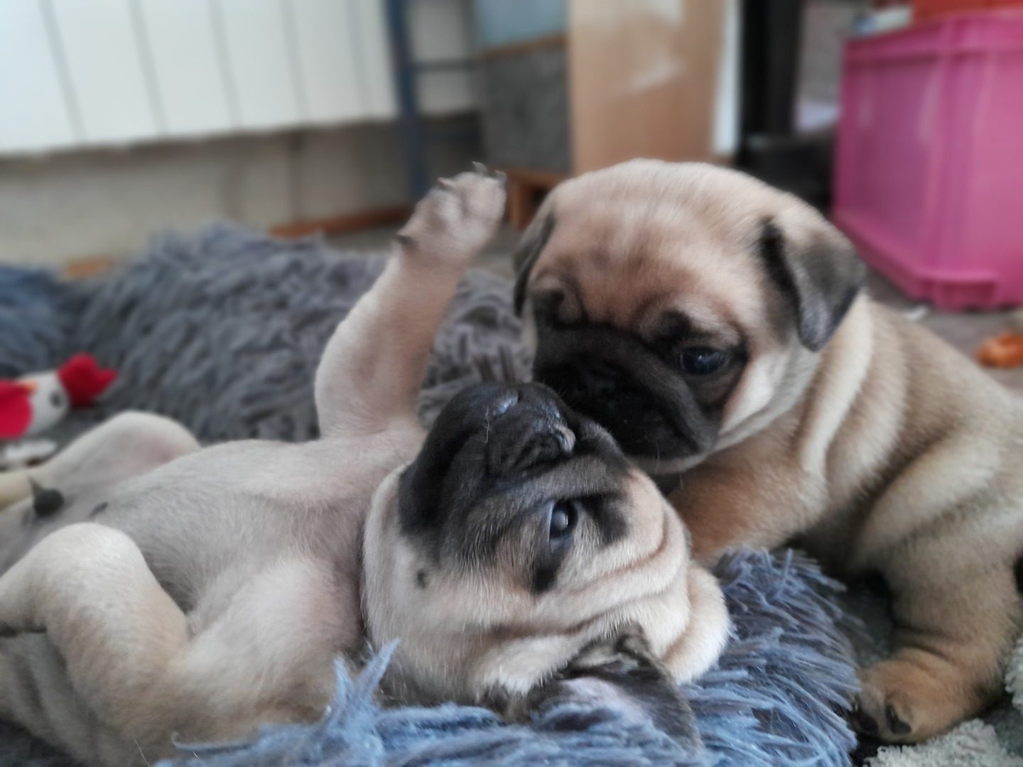C'est avec grand bonheur quand une naissance de carlin pointe son nez, car ce sont des chiens merveilleux d'une gentillesse tout épreuve, avec du charisme, de la drôlerie à revendre, et une grande fidélité.