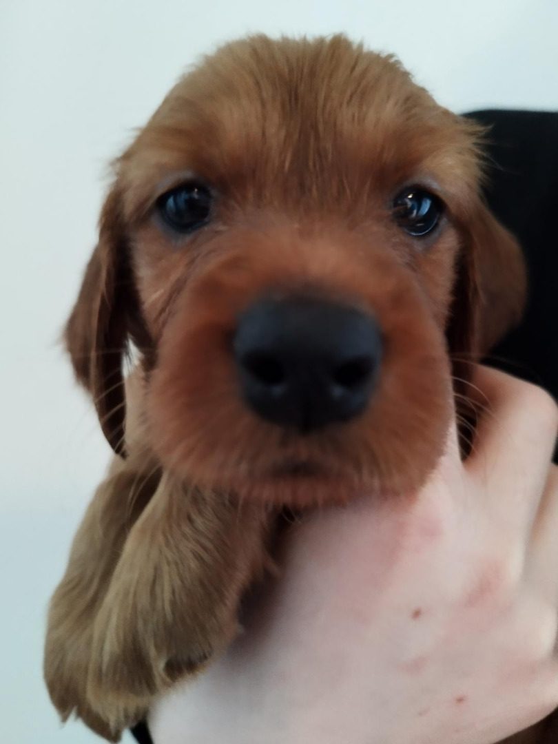 Les chiens setter irlandais sont attachants, collants, affectueux, sensible, actifs, ils aiment les longues promenades, les grands espaces et la chasse (chien d’arrêt)