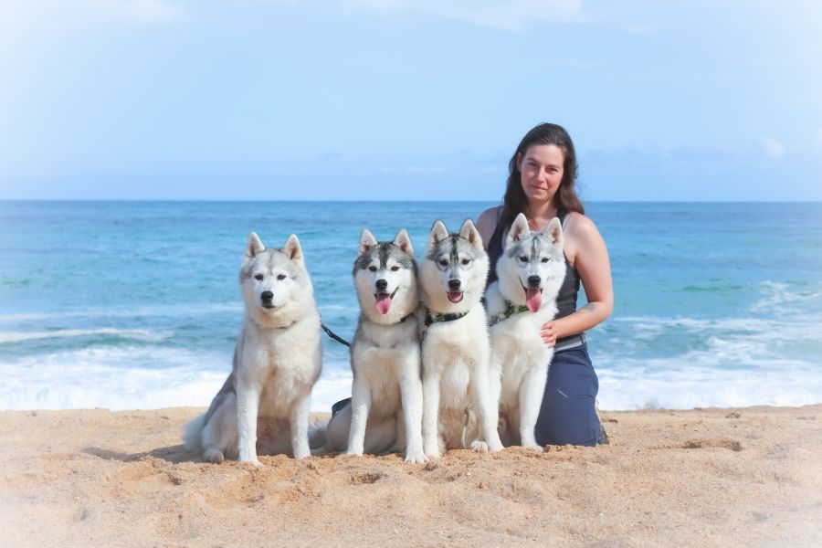 Je parcours une bonne partie de l'Europe pour faire des expositions de beauté et mon compagnon s'occupe de la partie attelage en cani-trotinette ou en traîneau dès que les conditions météo le permettent.