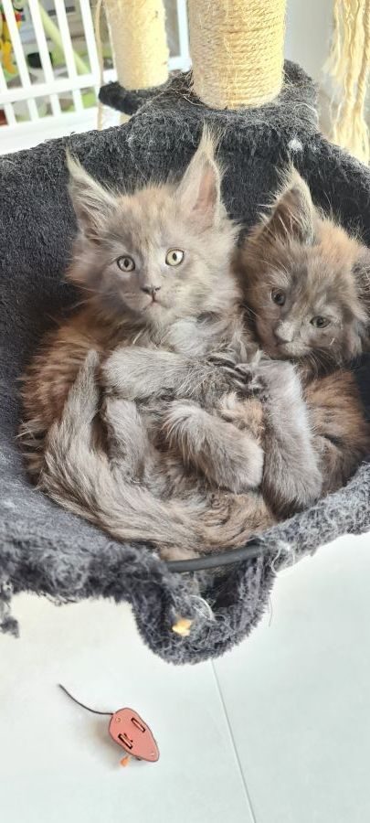 Les maines coons sont des chats majestueux, avec des comportements typiques: très joueurs, ils vous suivent comme des petits chiens. Ils sont également bavards! Ce sont des chats de grande taille. Notre mâle pèse plus de 7kg!
