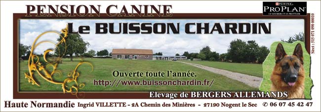 L'Elevage du BUISSON CHARDIN fait également PENSION CANINE, agrée par la Direction des Services Vétérinaires.