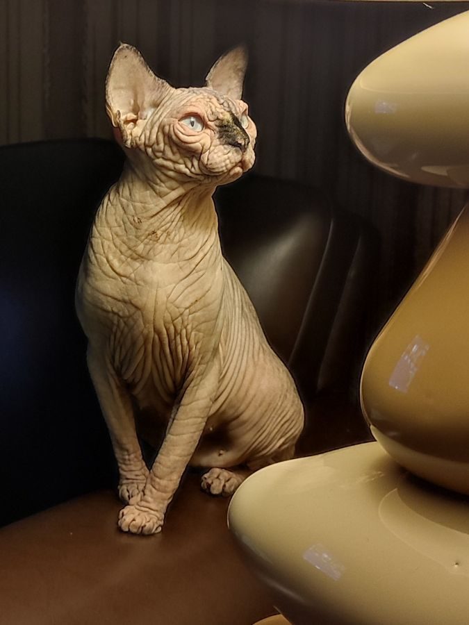 Avec son physique atypique le sphynx est doté d'un charme particulier. Sociable, calme, vif et intelligent, il adore être cajolé et s'attachera rapidement à vous pour devenir votre compagnon par excellence.