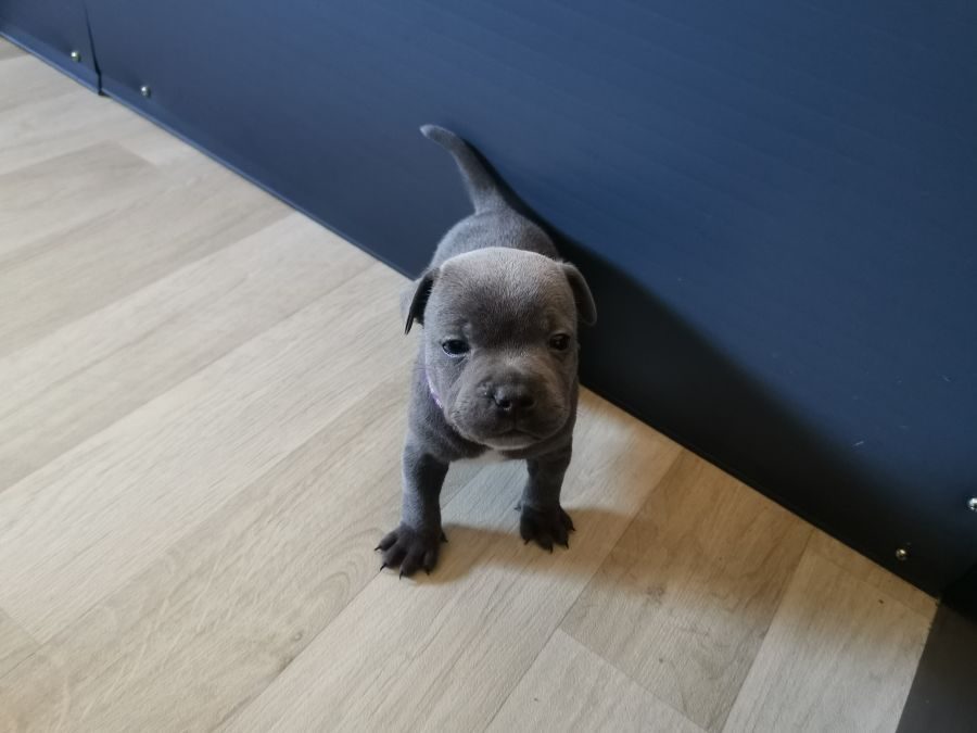 Assistante vétérinaire depuis 15 ans, j'ai avec mon mari une passion pour les Staffordshire bull terrier, c'est pourquoi avons une portée par an.