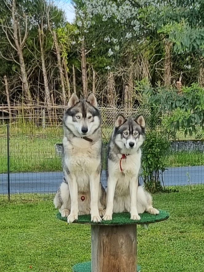 Je suis une éleveuse qui adore les huskys. J'en possède depuis 8 ans. Je suis située en Gironde, plus précisément dans le Médoc. Mes huskys, ainsi que mes chiots, sont élevés en famille avec d'autres animaux : chats, lapins, cochons d'Inde, oiseaux et poules. Ils ne sont pas du tout chasseurs et ne sont pas fugueurs. Mon couple d'huskys est de couleur agouti, de couleur grise loup. Le papa est confirmé au LOF (Livre des Origines Françaises). La maman n'est pas confirmée (devait être confirmée, mais était gestante). J'aimerais que mes chiots partent avec des personnes qui connaissent la race.