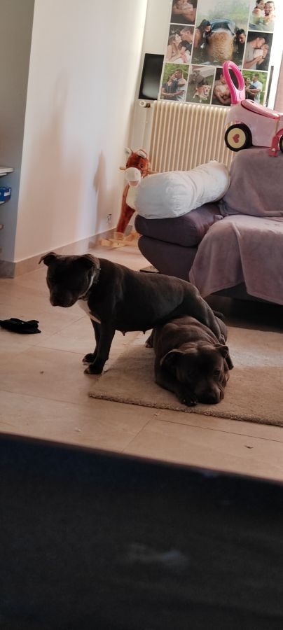 Je possède 2 staffie bleu ryo (3ans) et Sydney (2ans)