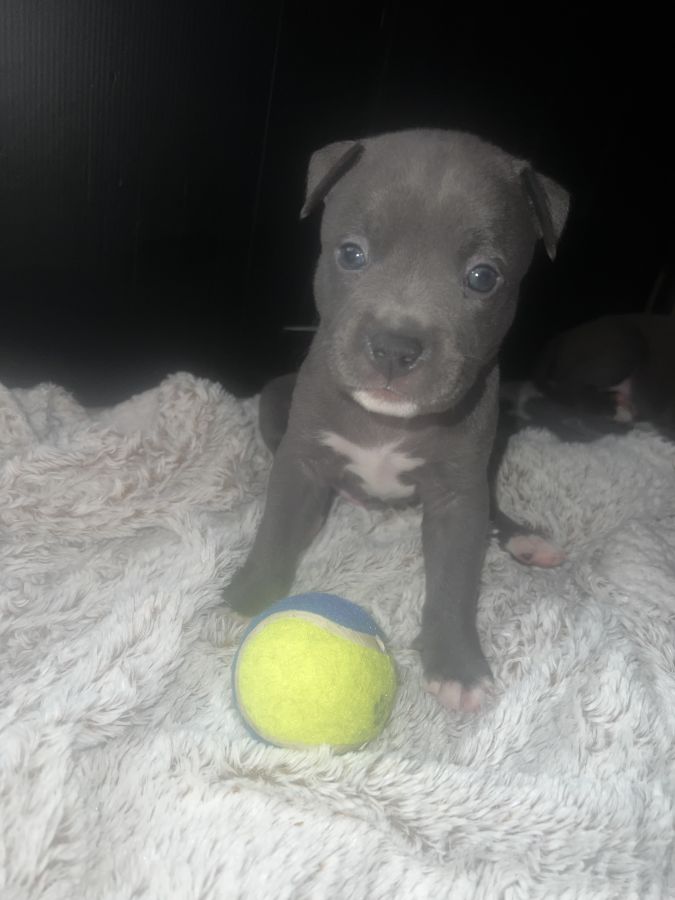 je suis éleveuse de Staff à Paris, en Île-de-France (American Staffordshire Terrier). Je tiens un élevage familial de Staff bleu et bleu fawn LOF, issus d’un très bon pedigree et de très bonnes lignées, testées et confirmées.