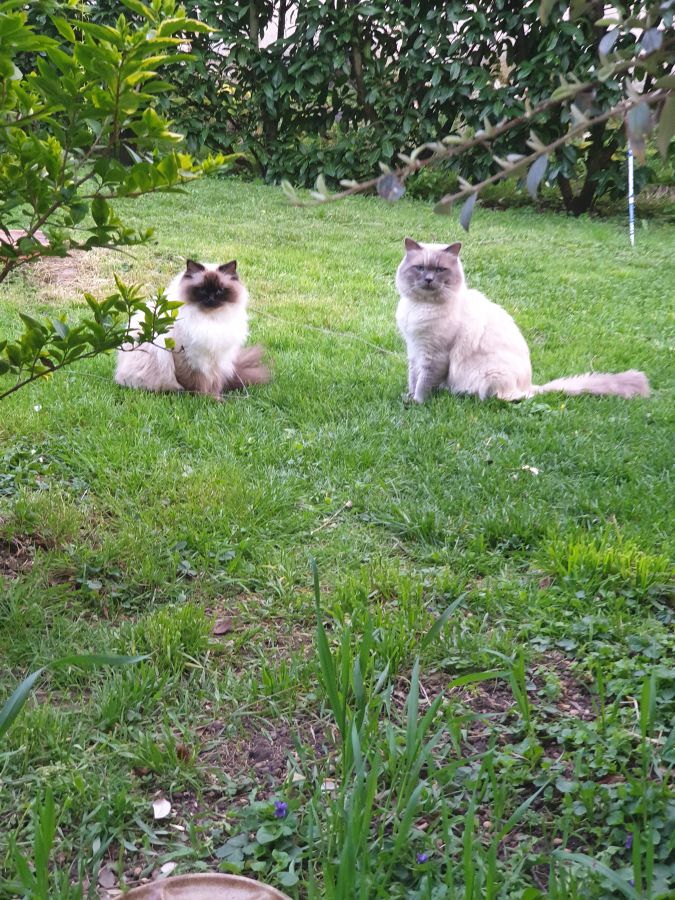 Ils vivent dans une maison à la campagne et partagent tous nos espaces. Ils ont accès au jardin avec un harnais et disposent d'un petit parc sécurisé. Ce sont des amours de chats très câlins et affectueux. Leur nom signifie "poupée de chiffon". Ce sont des chats tranquilles et calmes qui s'adaptent très bien à différents environnements lors de déplacements en week-end ou en vacances. Ils font le bonheur de mon quotidien.