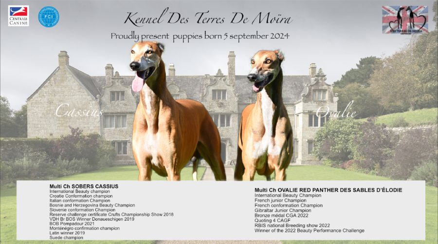 Ne manquez pas cette occasion de devenir membre de notre communauté passionnée de propriétaires de Greyhound. Découvrez le monde merveilleux de cette race noble et rejoignez-nous sur notre page facebook: https://www.facebook.com/elevagedesterresdemoira/