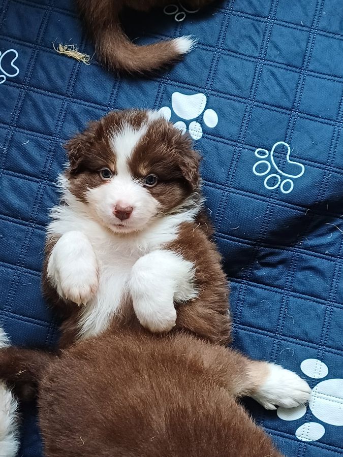 Bernay-Vilbert • 77540 • Seine-et-MarneNous vivons en Seine et Marne, en pleine campagne, entourés de vaches. Toute la famille est tombé sous le charme des Bergers Australiens, voilà 15 ans, attachant et vif, notre premier chien (rouge merle) nous a convaincu d'en prendre un second, puis un troisième et nous n'avons jamais été déçus ! Élevés au sein de la famille nos chiots sont joueurs et sociables, ils sont également habitués à la compagnie des chats et des autres chiens.