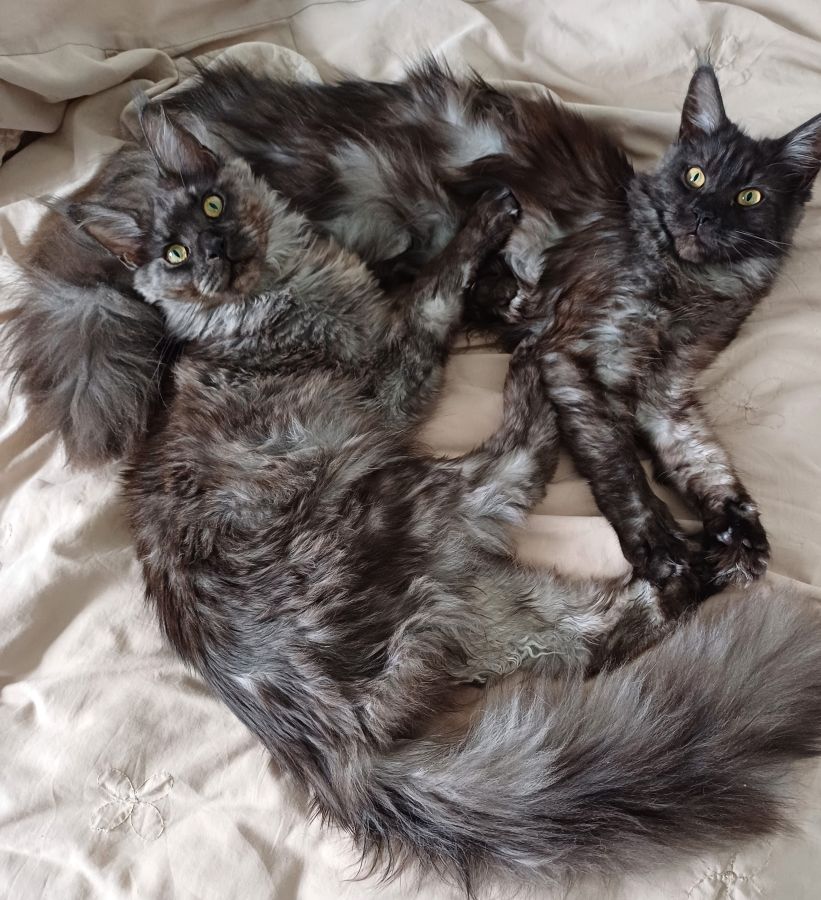 Nous avons toujours été entourés d'animaux, et un jour, avec mon mari et mes 3 enfants, nous avons décidé d'acheter notre premier Maine Coon. Nous avons découvert la race, sa beauté et surtout son caractère incroyable!