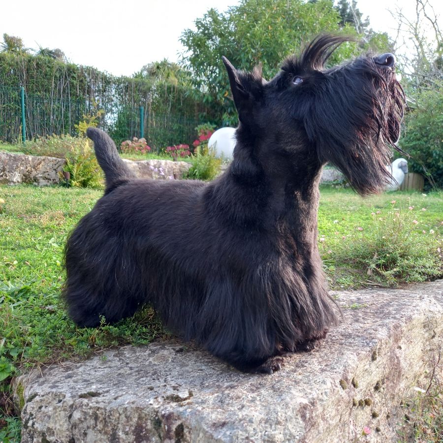Le Scottish Terrier est un chien très attaché à SON maitre sans être sauvage ou repousser les étrangers. Il est très patient et capable de se suffire à lui même lorsque c'est nécessaire. Il aboie peu mais on l'entend très bien quand il le fait :-). Il est têtu mais avec de la douceur et de la persévérance on obtient de très bon résultats. Il possède une santé robuste et ne craint ni le froid ni la pluie et supporte malgré tout très bien une chaleur modérée (éviter donc l'Espagne au mois d'Aout ;-). Au niveau esthétique, l'idéal est de le toiletter environ 3 fois par an et Il ne perd ses poils que 2 fois par an.