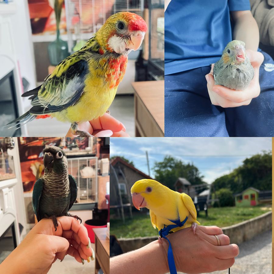 Tous nos oiseaux sont élevés à la main dans le respect et vivent dans notre maison.